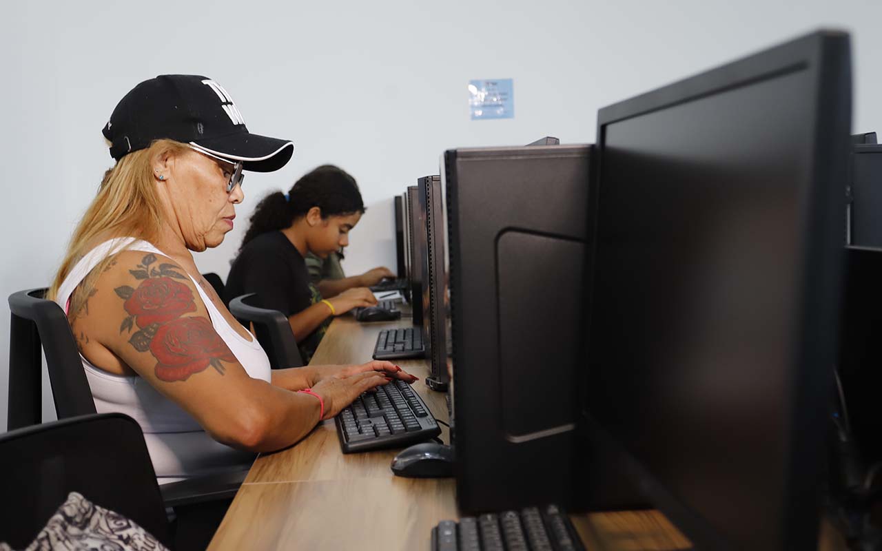 “A reciclagem é fundamental para nos mantermos atualizados e competitivos. O curso de Informática está me ajudando a adquirir novas competências que são muito valorizadas no mercado,” comentou Marinete Maria da Conceição (60), auxiliar de serviços gerais, aluna do curso.